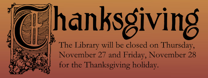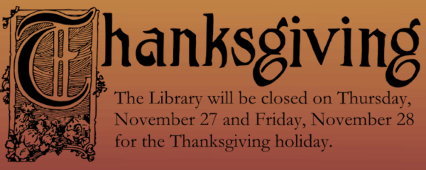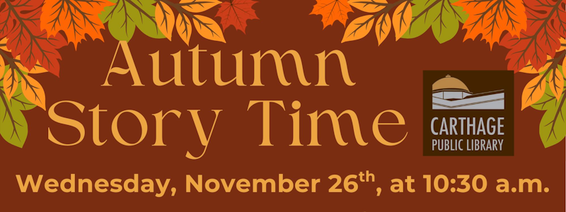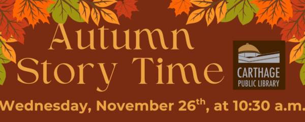 The Carthage Public Library will be closed on Thursday, November 27th and Friday, November 28th for the Thanksgiving holiday.