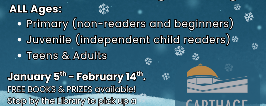 Your Carthage Public Library is now participating in the nationwide reading program called 1,000 Books Before Kindergarten for children ages 0 to pre-k. If you