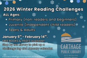 2026 Winter Reading Challenge begins Monday, January 5th for all ages!