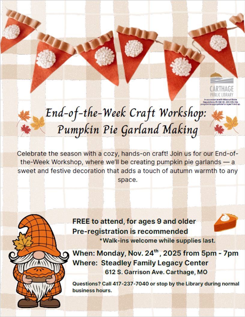 Questions? Call 417-237-7040 or stop by the Library during normal